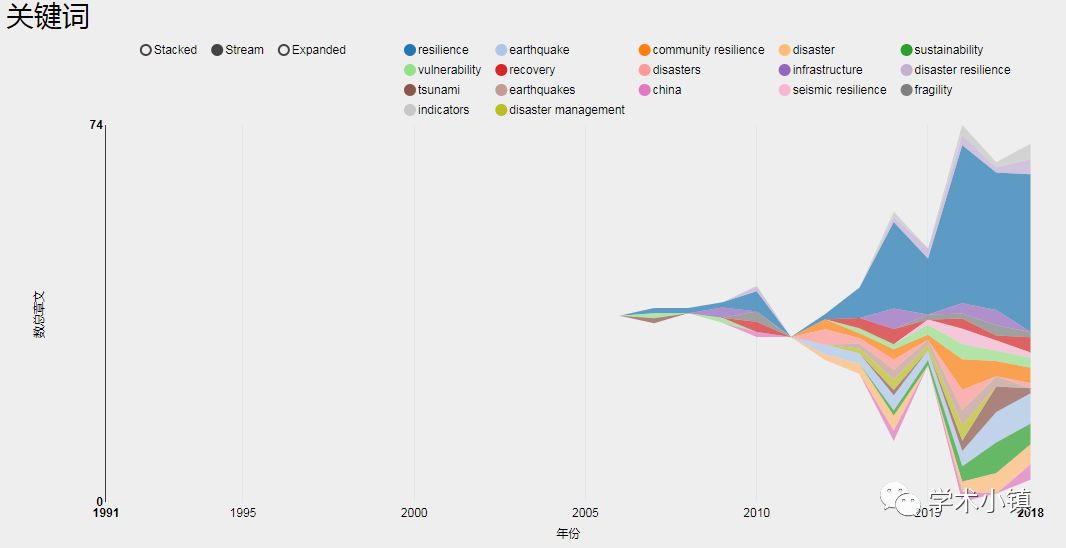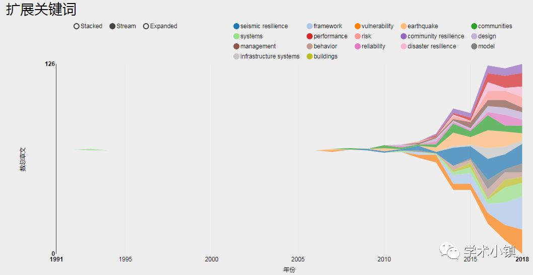 从占比来看,除了resilience和earthquake外,framework,vulnerability,performance和community研究较多。