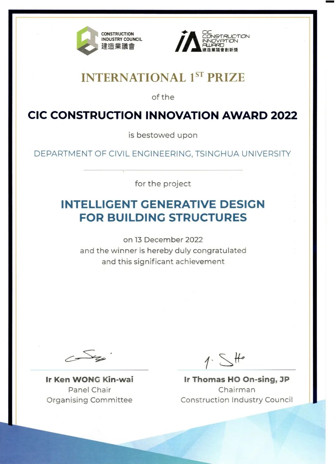 香港建造业议会2022建造业议会创新奖(CIC Construction Innovation Award 2022)于2022年12月13日颁布。