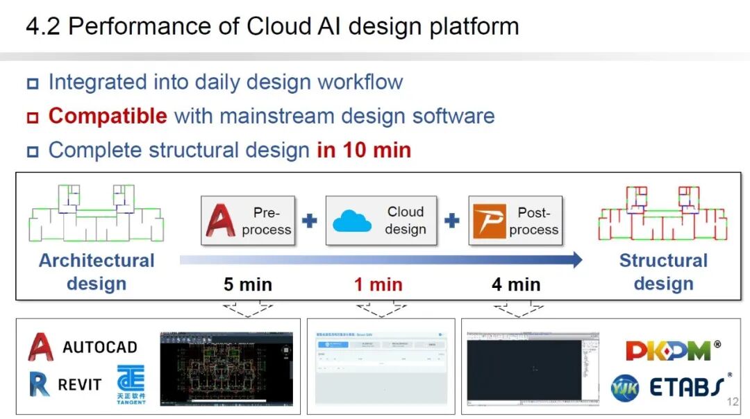 本作品开发的智能设计平台也可有效嵌入建筑结构设计的工作流程中。通过开发有效的前后处理工具,将智能设计与主流的结构设计软件相兼容,使得整个结构设计可以在10分钟左右完成。