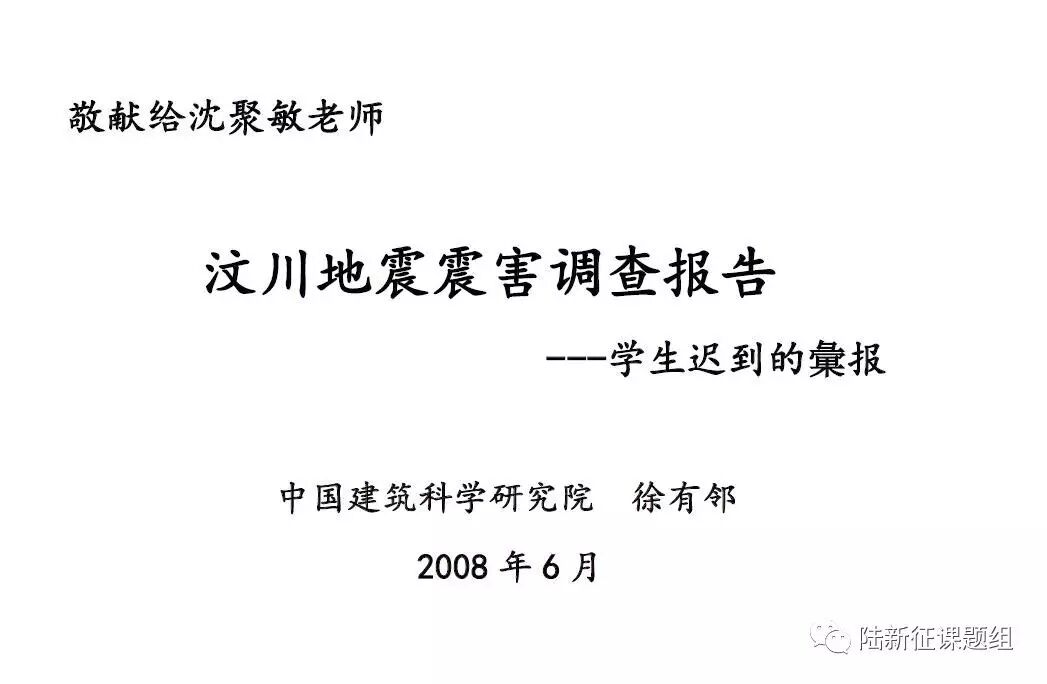 最后,以先生在2008年中国工程院《汶川地震建筑震害分析与重建研讨会》上提交的报告封面和目录作为本文的结束,先生的爱国情、母校情、专业情,尽在其中!