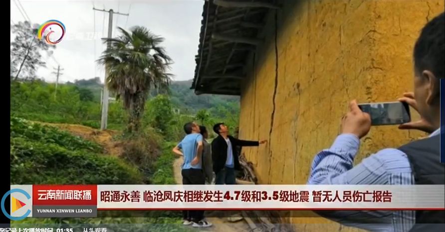CCTV-13新闻频道. 云南昭通 永善4.7级地震 有震感和落石 暂无人员伤亡报告[EB/OL].http://tv.cctv.com/2019/05/16/VIDEmqHH0jqquWmAQTy818VL190516.shtml. Accessed on May 2019.