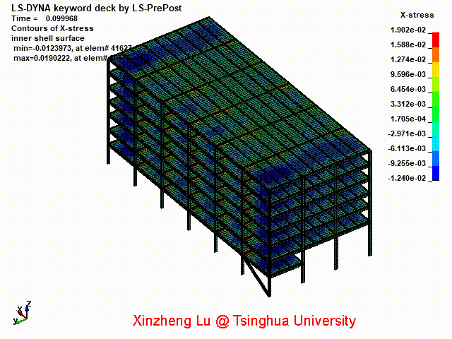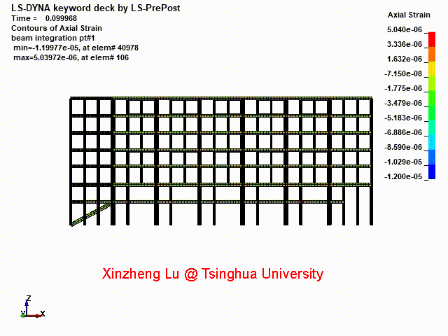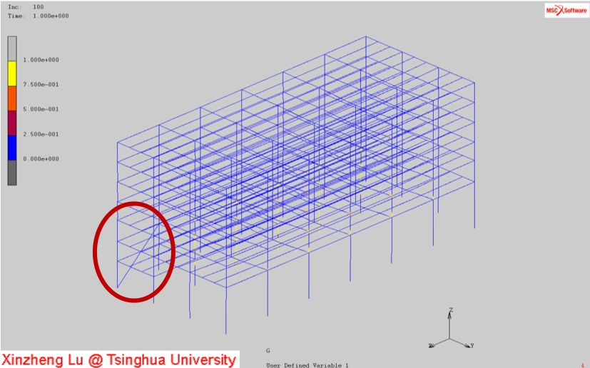 本次分析对一栋七层钢框架倒塌过程进行了模拟,介绍了计算机模拟在相关领域的应用情况,锻炼了研究生有限元分析的技能。
