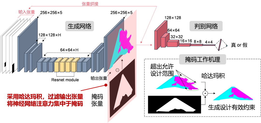 ✅ 掩膜约束+两阶段训练:用“轮廓掩码Mask”约束GAN防止设计溢出大坝轮廓;GAN训练时,先学1万组虚拟方案、再精细化学习42组真实案例。
