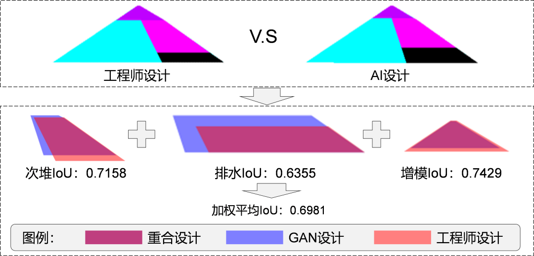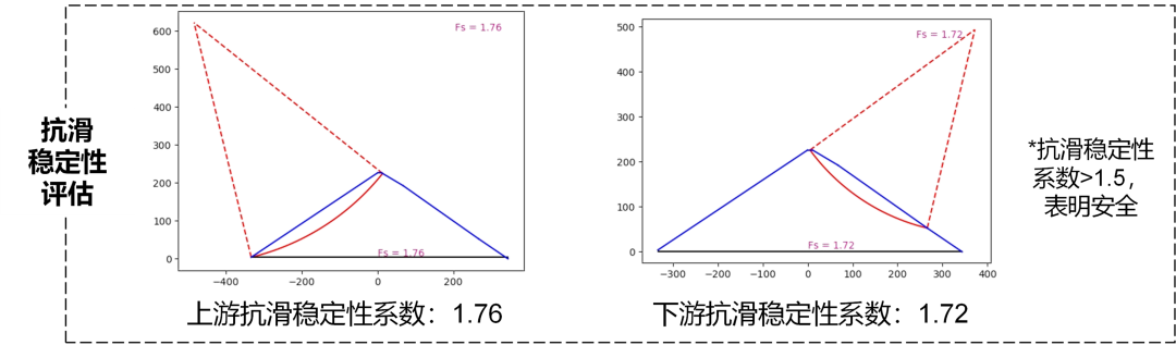 (3)评估:自动比对工程师方案,其中一个典型设计的分区加权IoU达0.48,与工程设计较为接近;且力学验证表明边坡抗滑稳定系数1.76>规范1.5限值。